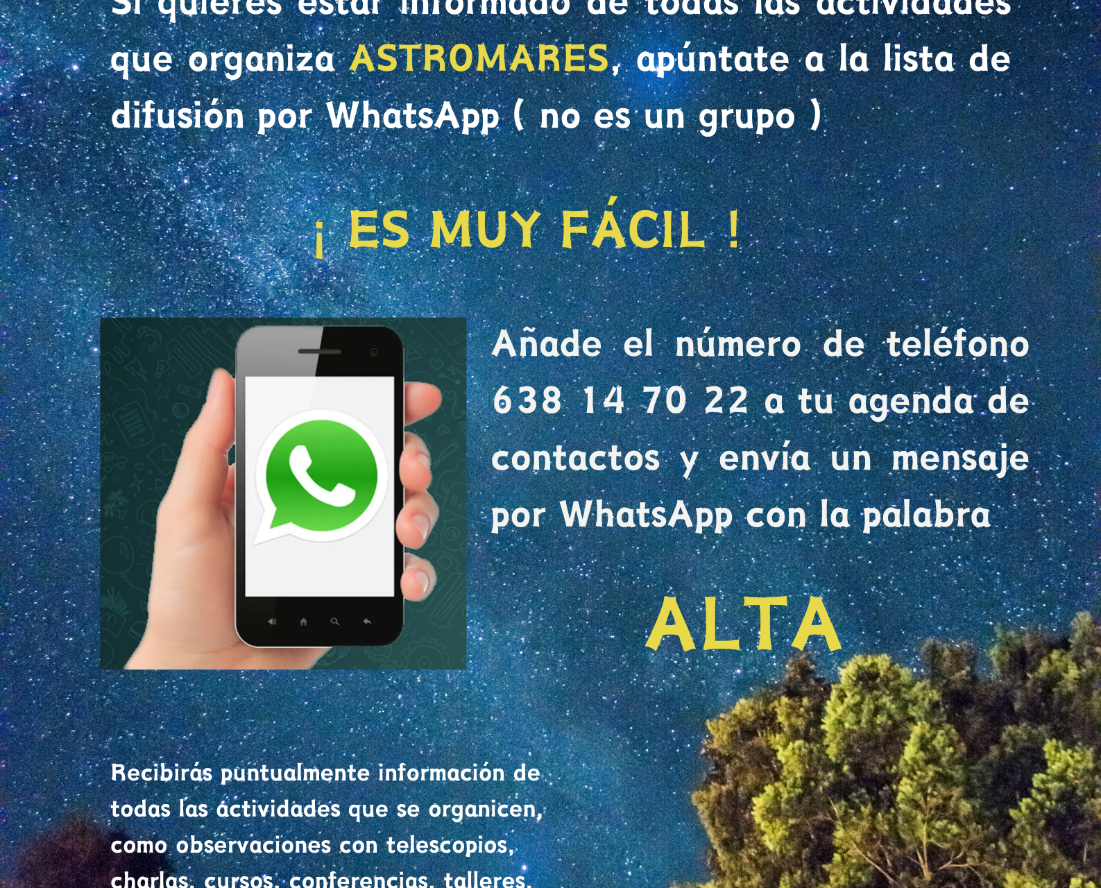 Te avisamos de los cursos, conferencias, exposiciones, talleres, observaciones con telescopios públicas, etc