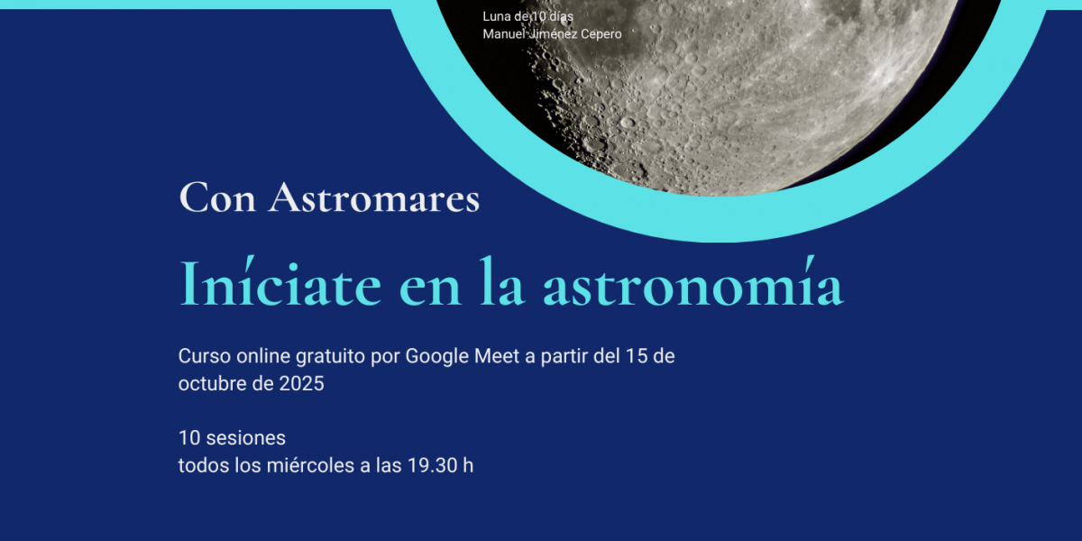 Si te quieres iniciar en esta Ciencia, te invitamos al nuevo curso de Astronomía. Comenzará el 15 de octubre y son 10 sesiones de 1,5 horas de duración. Se imparte